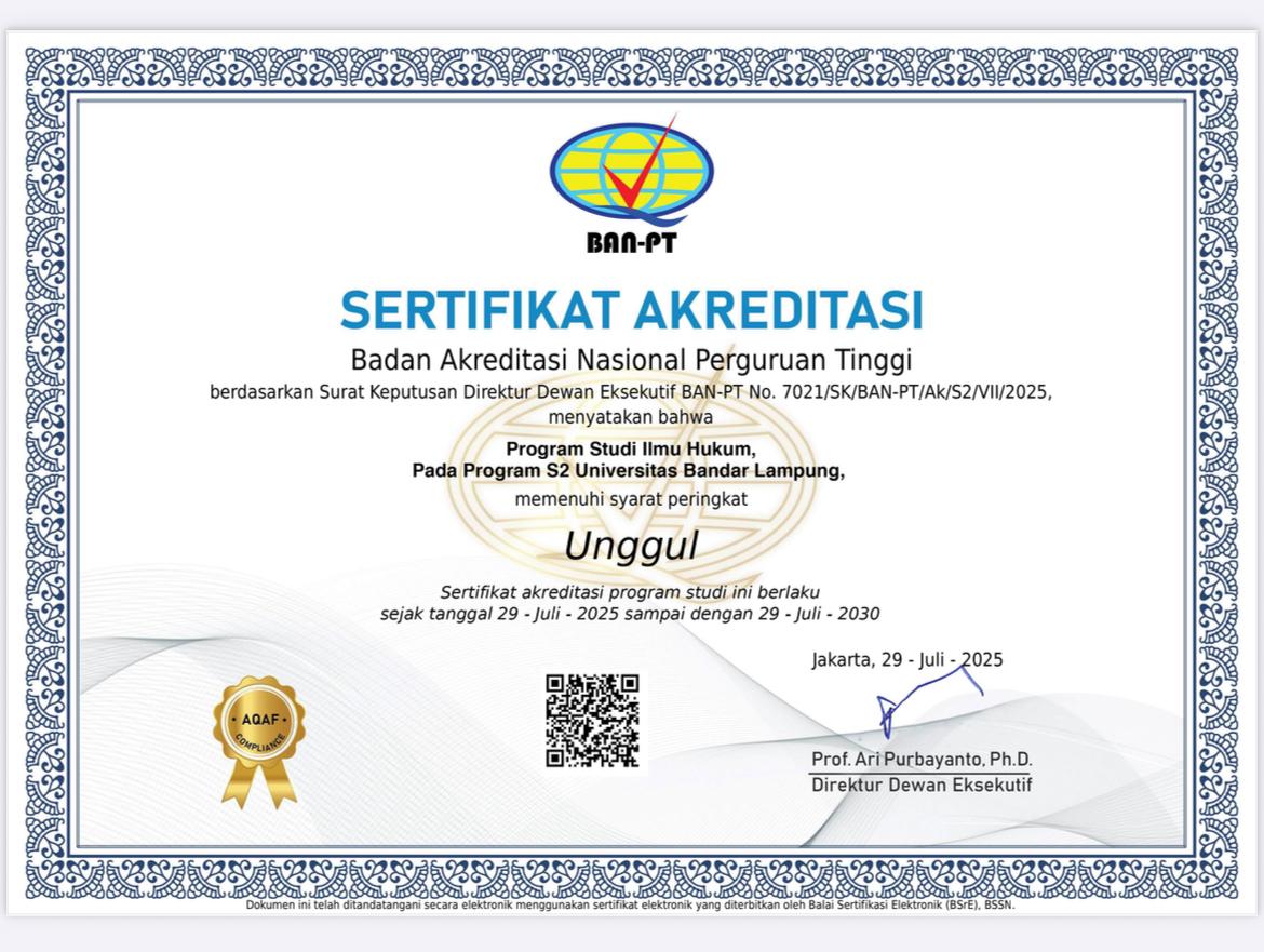 Akreditasi Unggul ini menjadi bukti nyata komitmen UBL dalam menyelenggarakan pendidikan hukum tingkat pascasarjana yang berkualitas, relevan dengan kebutuhan zaman, serta memiliki daya saing di tingkat nasional.