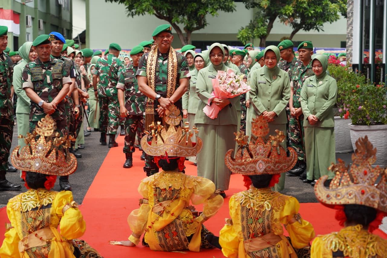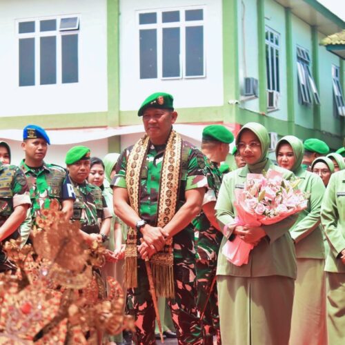 Lampung (alodelima.com) – Setibanya Pangdam XXI/Raden Inten (RI) Mayjen TNI Kristomei Sianturi, S.Sos., M.Si. (Han) bersama Ketua Persit KCK Daerah XXI/RI Ny. Asti Kristomei Sianturi di Makodam XXI/RI, disambut hangat Danrem 041/Gamas beserta Ibu dan Danrem 043/Gatam beserta Ibu. Penyambutan ditandai dengan pengalungan kain tapis serta pemberian bunga tangan oleh Ibu Danrem 043/Gatam kepada Ibu Pangdam XXI/RI, Sabtu (30/08/2025).
