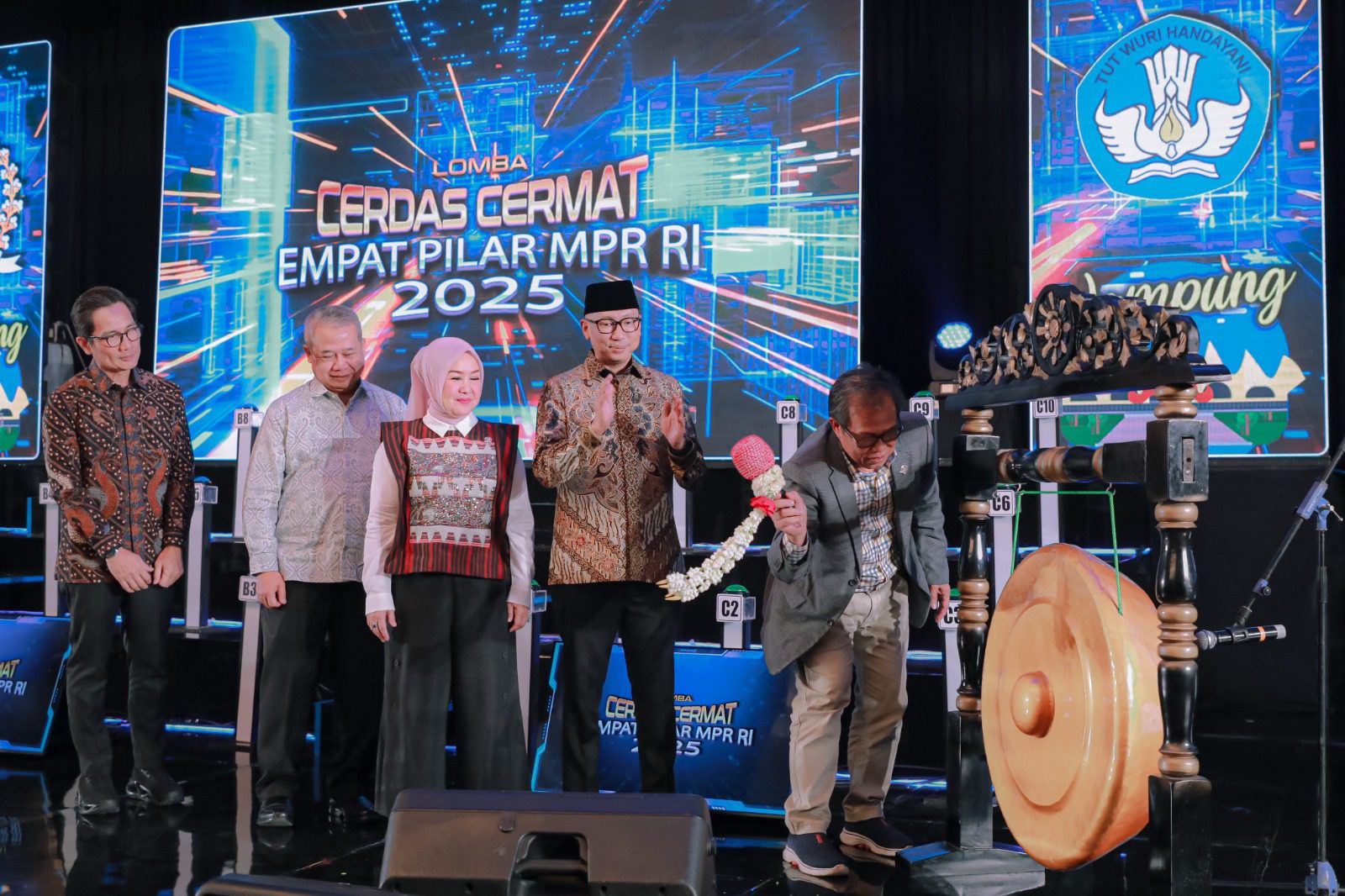 BANDAR LAMPUNG (alodelima.com) – Gubernur Lampung Rahmat Mirzani Djausal mendukung penuh upaya Majelis Permusyawaratan Rakyat Republik Indonesia (MPR RI) dalam menanamkan nilai-nilai kebangsaan melalui kegiatan Lomba Cerdas Cermat Empat Pilar MPR RI Tahun 2025 di Balroom Hotel Radison, Bandarlampung, Minggu (12/10/2025).