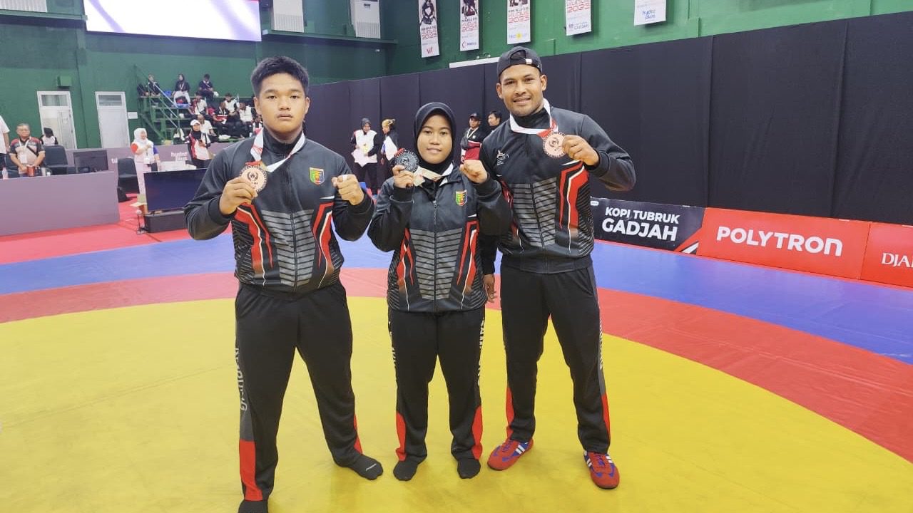 Kudus (Alodelima.com) – Tim Sambo Lampung berhasil meraih enam medali dari tujuh atlet yang dikirim ke PON Beladiri I Kudus 2025. Meski tanpa emas, Sambo Lampung meraih 2 medali perak dan 4 medali perunggu. Medali perak diraih oleh Rafita Nur Anggraini di kelas -72 Kg Sport Putri dan Muhammad Arif Baskoro di kelas – 64 Kg Sport Putra.