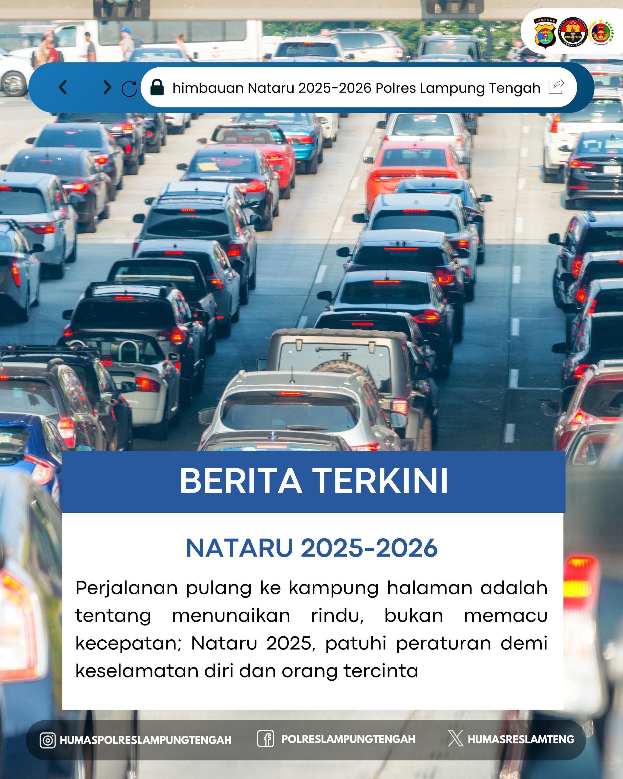 Lampung Tengah (alodelima.com) – Polres Lampung Tengah mengimbau kepada seluruh masyarakat yang akan melakukan perjalanan mudik maupun liburan selama periode Natal dan Tahun Baru (Nataru) 2025-2026 untuk selalu mematuhi peraturan lalu lintas.