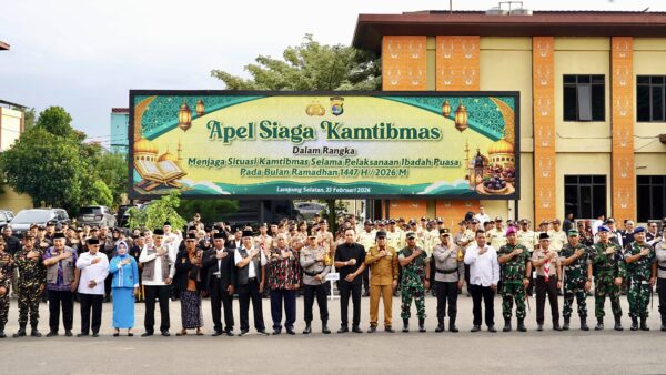 Metro – Kepala Staf Korem (Kasrem) 043/Gatam Kolonel Inf Sumarlin Marzuki., S.E., M.Han., Senin (23/2/2026) menghadiri kegiatan Apel Siaga Kamtibmas dalam rangka menjaga situasi Kamtibmas selama pelaksanaan ibadah puasa pada bulan Ramadan 1447 H / 2026 M, yang di pimpin Kapolda Lampung Irjen Pol. Helfi Assegaf, S.I.K., M.H., bertempat di lapangan Apel Polda Lampung Jl. Terusan Ryacudu, Way Huwi, Kecamatan Jati Agung, Kabupaten Lampung Selatan.