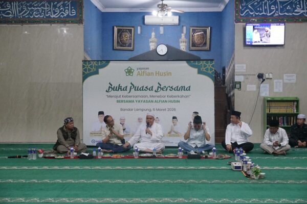 BANDAR LAMPUNG (alodelima.com) – Suasana Ramadan yang hangat dan penuh kekeluargaan terasa di Masjid Baitul Ilmi kampus Institut Informatika dan Bisnis Darmajaya saat Yayasan Alfian Husin menggelar acara buka puasa bersama dengan tema Merajut Kebersamaan, Menebar Keberkahan, Jumat (6/3/26) sore.