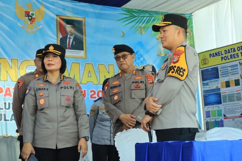 TUBABA (ALODELIMA.COM) – Perwira Pengamat Wilayah (Pamatwil) Polda Lampung wilayah Polres Tubaba Kombes Pol Juniar Simanjuntak, S.Si., M.Si., di dampingi Akbp Dr. Rinaldi Eka Saputra, S.H.,M.H, bersama Kapolres Tubaba AKBP Sendi Antoni.S.I.K, M.I.K, melaksanakan pengecekan Pos Pengamanan (Pos PAM) Islamic Center dan Pulung Kencana Ops Ketupat Krakatau 2026 Kec. Tulang Bawang Tengah Kab. Tulang Bawang Barat, di wilayah hukum Polres Tubaba, Rabu (18/03/2026)