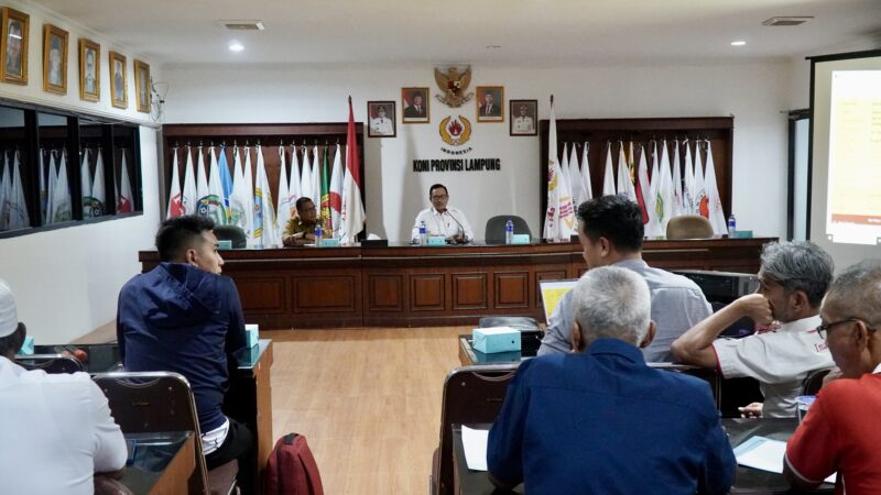 Bandar Lampung (Alodelima.com) – Rapat koordinasi menjelang kunjungan tim verifikasi venue Pekan Olahraga Nasional (PON) XXIII-2032 dilakukan ruang rapat KONI Lampung lantai 2 gedung Sumpah pemuda Way Halim Bandar Lampung, Senin 5 April 2026.